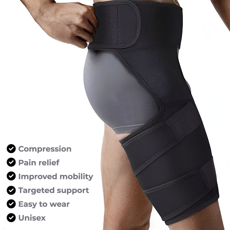 Note: The Hip Compression Brace is designed to provide support and relief; however, it is not a substitute for medical advice or treatment. Consult with a healthcare professional if you have specific concerns or underlying medical conditions. Experience the comfort and support of the Hip & Groin Compression Brace/Wrap, and enjoy improved mobility and relief from hip discomfort.
